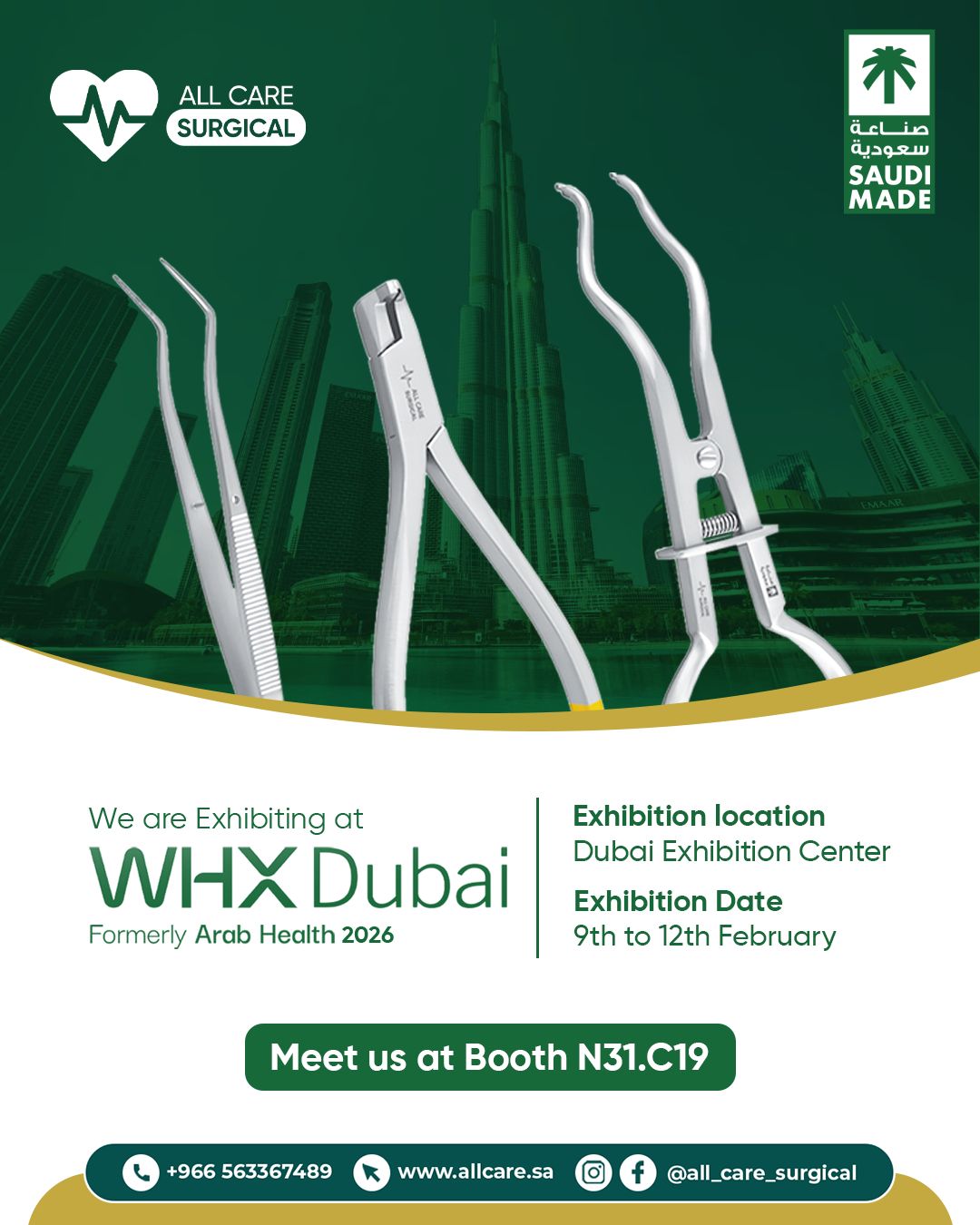We are proud to announce that All Care Surgical will be exhibiting at WHX Dubai 2026 (formerly Arab Health) from 09-12 February 2026, presenting Saudi-made precision surgical instr